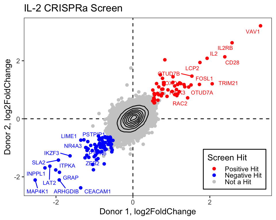 ) scale_colour_manual(values = c("Positive Hit" = "red", "Not a Hit" = "grey80", "Negative Hit" = "blue")) +