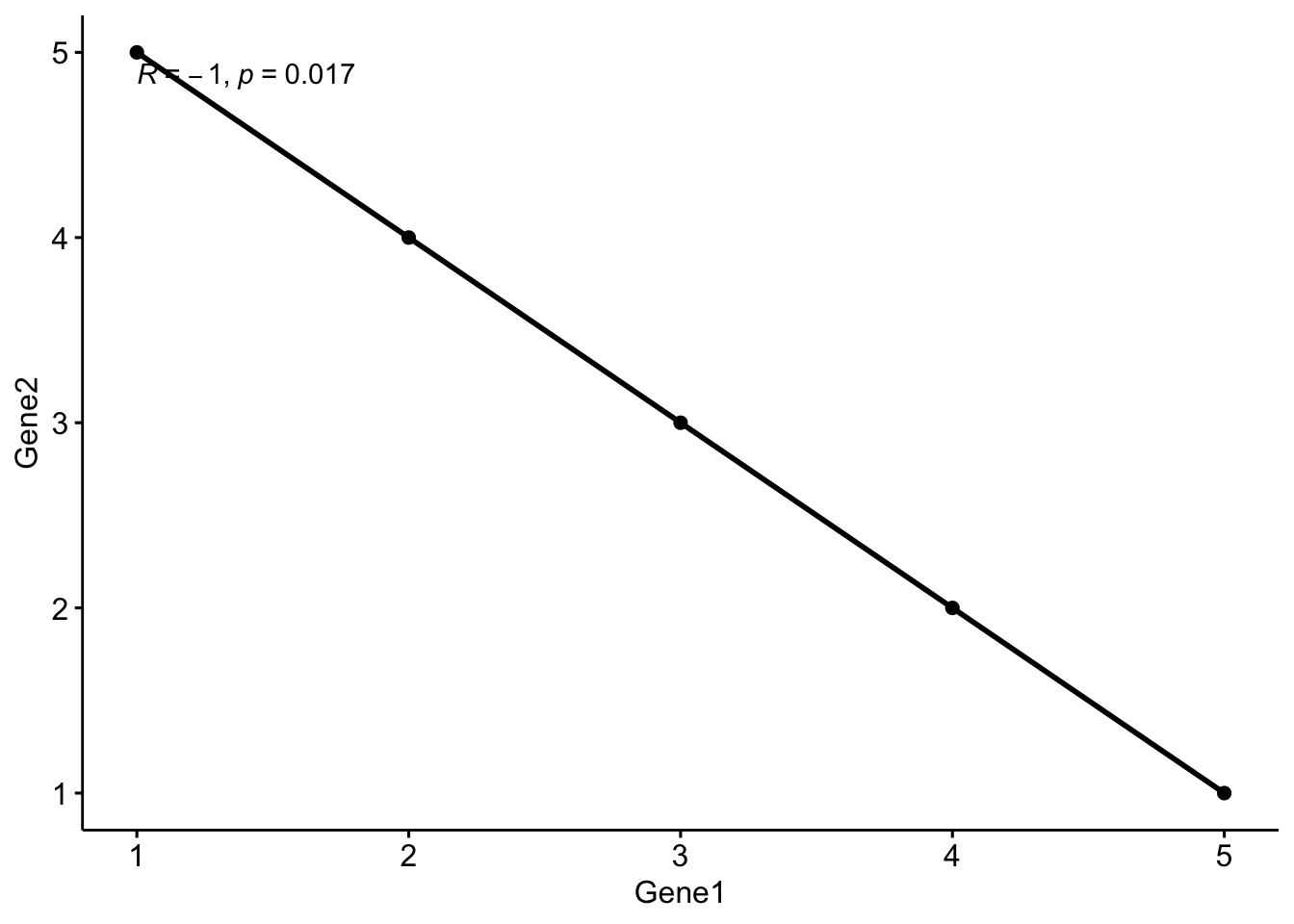 ggscatter(df, x = "Gene1", y = "Gene2",