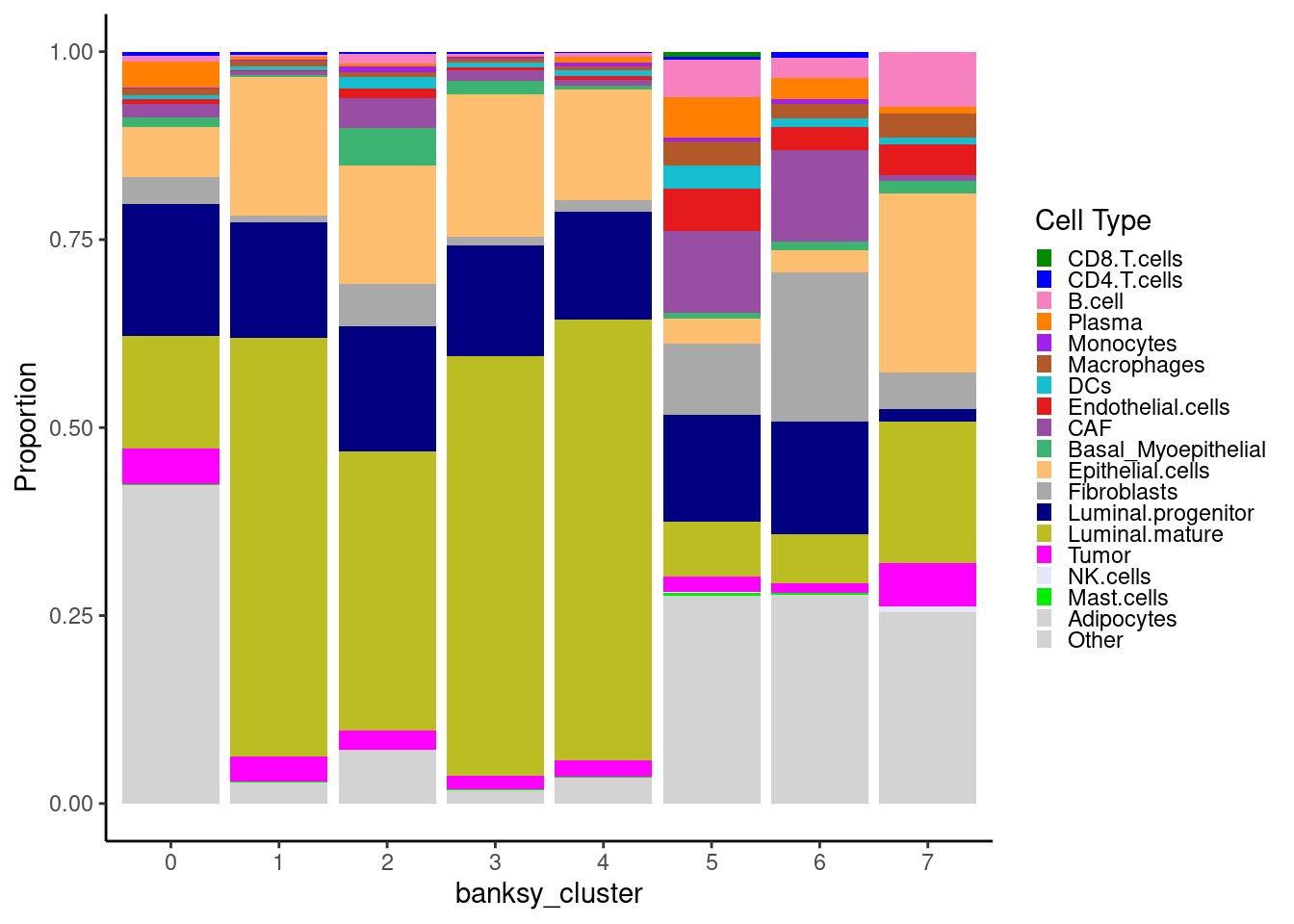 metadata <- object@meta.data[, c("seurat_cluster.projected", "banksy_cluster", "cell_type")] %>%