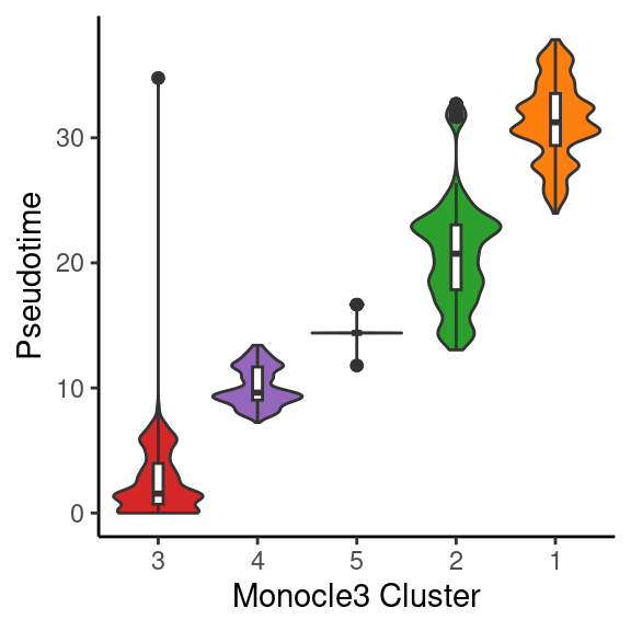 labs(x = "Monocle3 Cluster", y = "Pseudotime") +